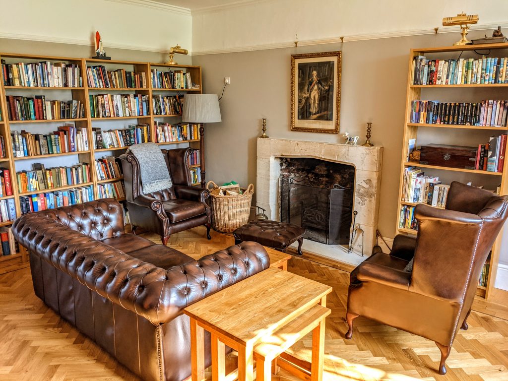 Brook Hall is a large Grade 2 listed historic building that has been lovingly renovated in recent years. It has 6 generously sized bedrooms, three of which have en-suite bathrooms, with an additional 2 bathrooms for the others to share. There are two principle reception rooms: a large family room large amounts of seating and huge television, and the beautiful library with Chesterfield sofa and armchairs. Parking for up to 12 cars is included with your booking with more available for a small additional charge.